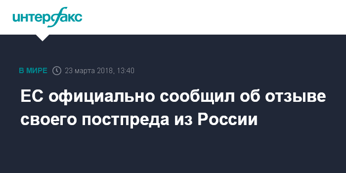 Ранее премьер-министр Нидерландов Марк Рютте заявил, что "постпред ЕС в РФ отзывается для консультаций в Брюссель" в связи с отравлением экс-полковника ГРУ Сергея Скрипаля.
