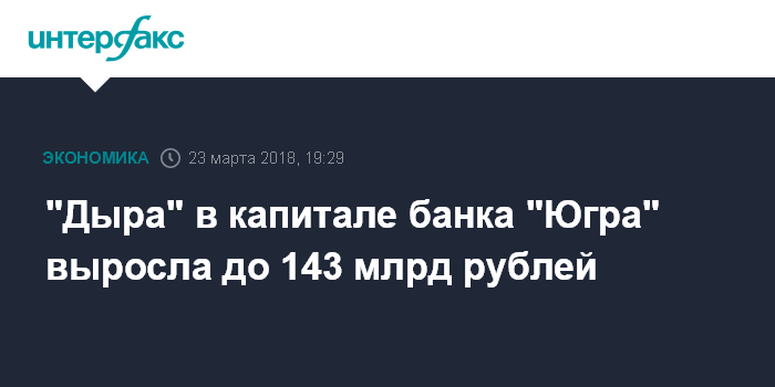 "Дыра" в капитале банка "Югра" выросла до 143 млрд рублей