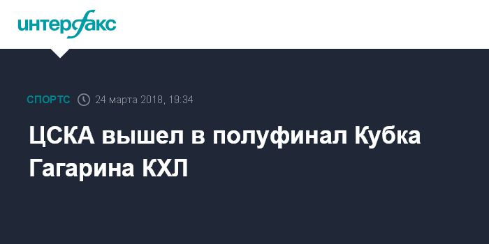 Москва. 24 марта. INTERFAX.RU - Хоккеисты московского ЦСКА стали обладателями путевки в 1/2 финала Кубка Гагарина Континентальной хоккейной лиги.