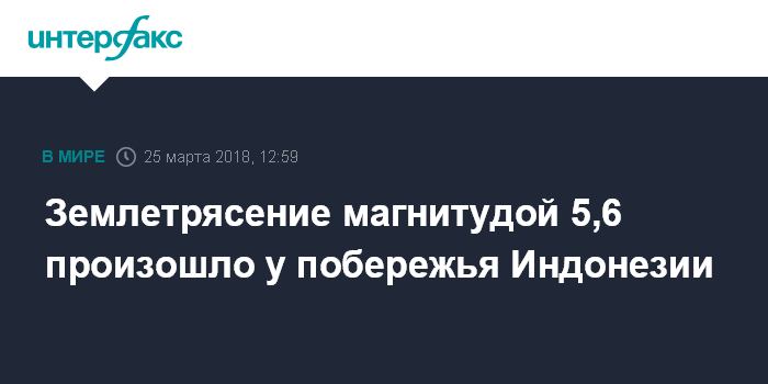 Землетрясение магнитудой 5,6 произошло у побережья Индонезии