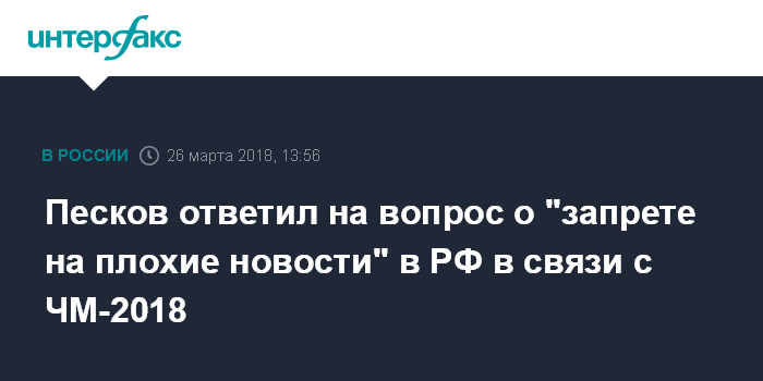 Песков ответил на вопрос о "запрете на плохие новости" в РФ в связи с ЧМ-2018