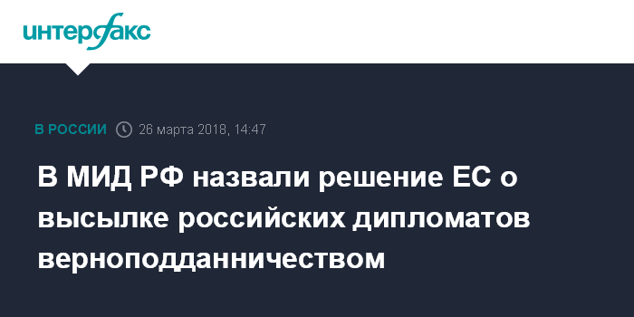 Москва. 26 марта. INTERFAX.RU - В МИД РФ назвали планируемую высылку российских дипломатов из стран ЕС верноподданичеством и обвинили Лондон в навязывании европейцам ухудшения отношений с Россией.