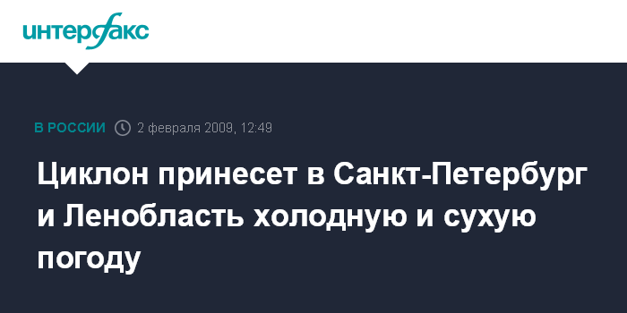 Москва. 2 февраля. INTERFAX.RU - Прохладная погода, определяемая антициклоном, заменится в ближайшие дни в Петербурге на устойчивый мороз до минус 15 градусов, сообщили "Интерфаксу" в понедельник в городском Гидрометцентре.