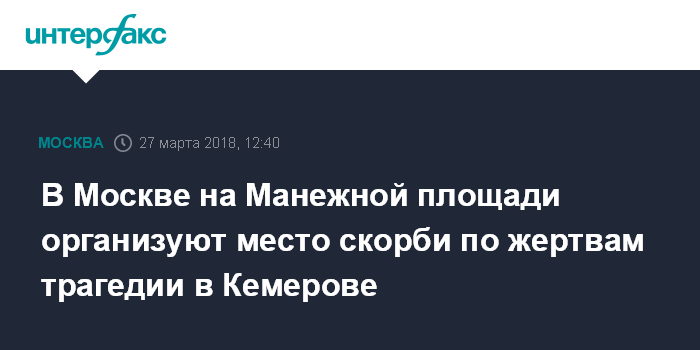 В Москве на Манежной площади организуют место скорби по жертвам трагедии в Кемерове