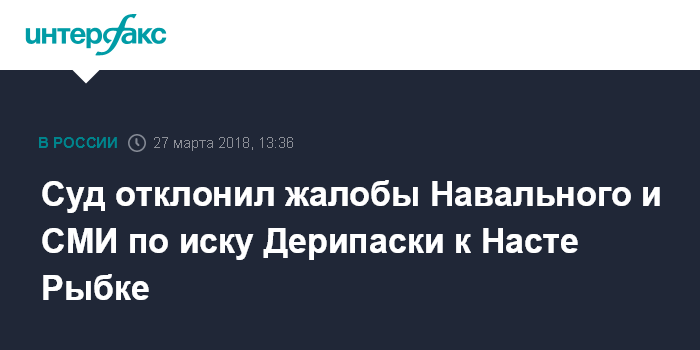 Суд отклонил жалобы Навального и СМИ по иску Дерипаски к Насте Рыбке