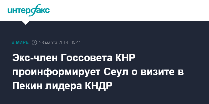 Экс-член Госсовета КНР проинформирует Сеул о визите в Пекин лидера КНДР
