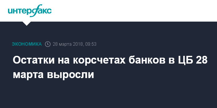 Остатки на корсчетах банков в ЦБ 28 марта выросли