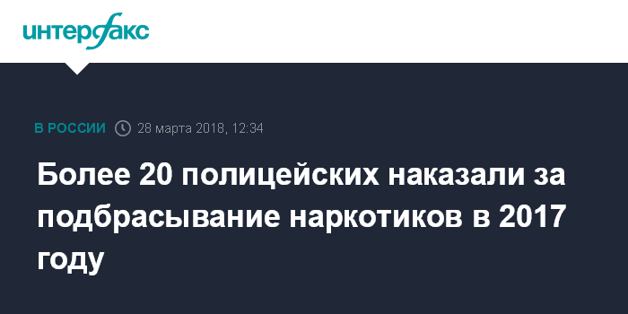 Москва. 28 марта. INTERFAX.RU - Свыше 20 полицейских привлечены к ответственности за подбрасывание наркотиков гражданам в прошлом году, сообщил глава МВД РФ Владимир Колокольцев.