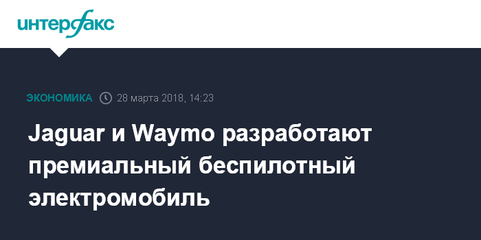 Москва. 28 марта. INTERFAX.RU - Британский автопроизводитель Jaguar Land Rover (JLR) и компания Waymo холдинга Alphabet, куда также входит Google, объявили о начале долгосрочного стратегического партнерства, в рамках которого они разработают первый в мире премиальный беспилотный электромобиль.