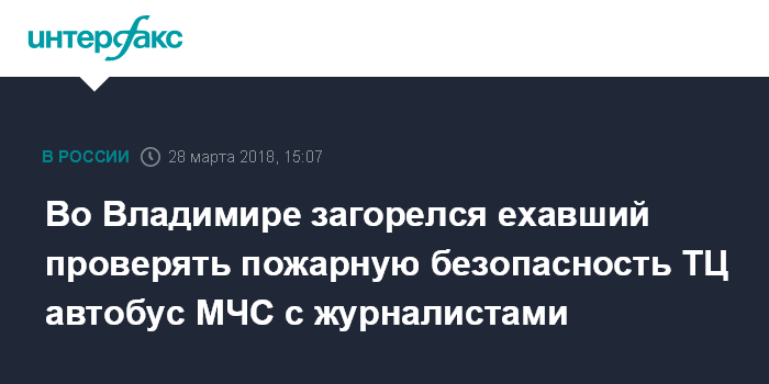 Москва. 28 марта. INTERFAX.RU - Возгорание в моторном отсеке произошло в автобусе "ПАЗ", в котором представители МЧС по Владимирской области и журналисты направлялись на проверку соблюдения пожарной безопасности местными торговыми центрами, сообщили "Интерфаксу" в пресс-службе ГУ МЧС России по региону.