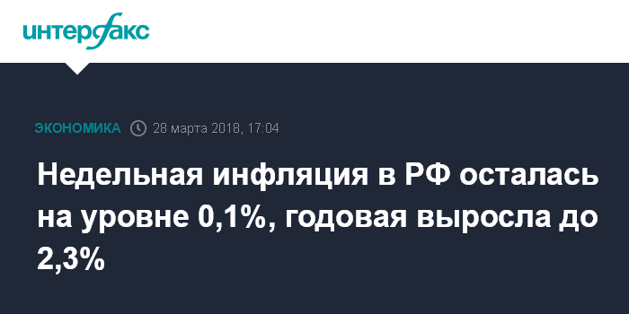 Недельная инфляция в РФ осталась на уровне 0,1%, годовая выросла до 2,3%