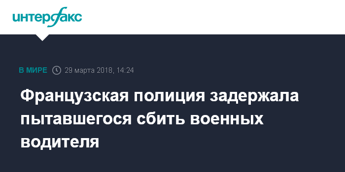 Москва. 29 марта. INTERFAX.RU - Сотрудники французской полиции задержали в четверг мужчину, который пытался на автомобиле марки "Пежо" совершить наезд на группу военных в департаменте Изер на юго-востоке Франции, сообщает телеканал BFM TV.