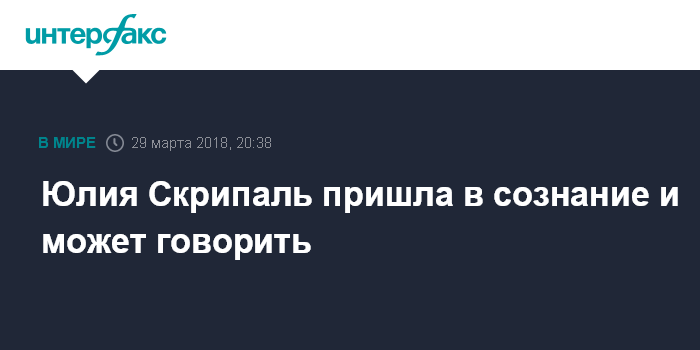 Москва. 29 марта. INTERFAX.RU - Состояние Юлии, дочери бывшего сотрудника ГРУ Сергея Скрипаля, быстро улучшается - она находится в сознании и может говорить, сообщает в четверг BBC News.