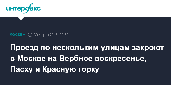 Проезд по нескольким улицам закроют в Москве на Вербное воскресенье, Пасху и Красную горку