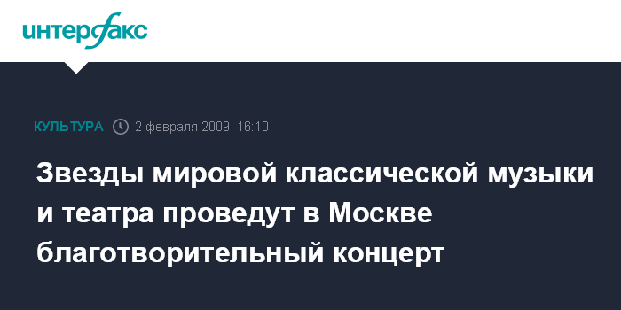 Звезды мировой классической музыки и театра проведут в Москве благотворительный концерт