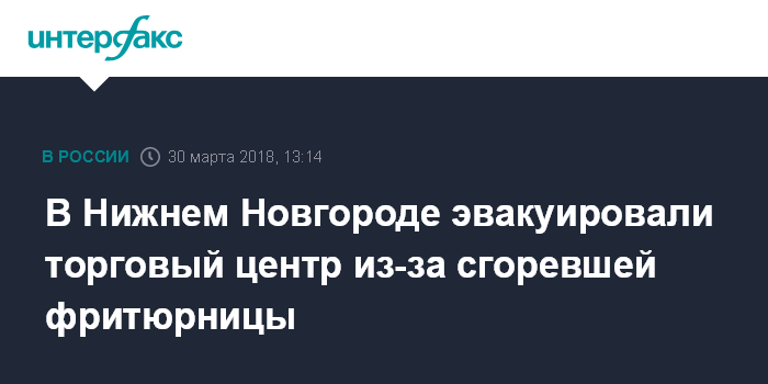 Москва. 30 марта. INTERFAX.RU - Возгорание в кафе торгово-развлекательного центра "Седьмое небо" в Нижнем Новгороде произошло в пятницу, из помещения ТРЦ были эвакуированы посетители и персонал.