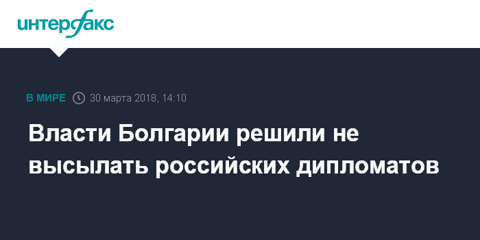 Москва. 30 марта. INTERFAX.RU - Премьер Болгарии Бойко Борисов объявил в пятницу о решении не высылать из страны российских дипломатов в связи с отравлением в Великобритании экс-сотрудника ГРУ Сергея Скрипаля.