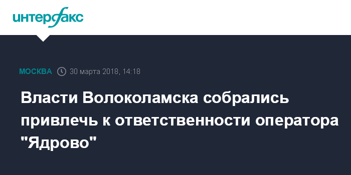 Москва. 30 марта. INTERFAX.RU - Оператор полигона "Ядрово" будет привлечен к ответственности вплоть до уголовной из-за сложной экологической ситуации, возникшей на этом объекте в Волоколамском районе Подмосковья, заявил журналистам и.о. главы района Андрей Вихарев.