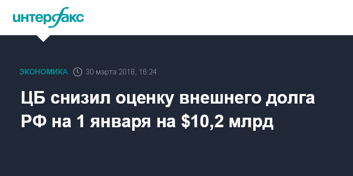 ЦБ снизил оценку внешнего долга РФ на 1 января на $10,2 млрд