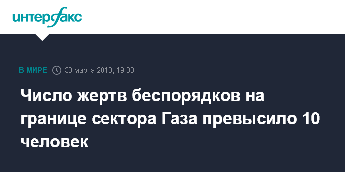 Москва. 30 марта. INTERFAX.RU - В результате беспорядков на границе Израиля с Сектором Газа погибли 12 палестинцев, сообщает в пятницу газета Jerusalem Post. Число пострадавших увеличилось с 500 до 1,1 тыс. человек.