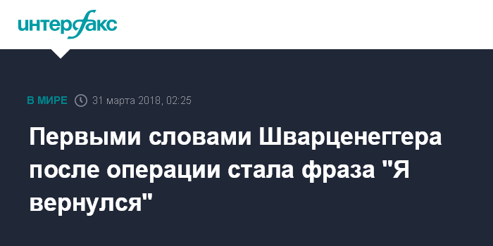 Первыми словами Шварценеггера после операции стала фраза "Я вернулся"