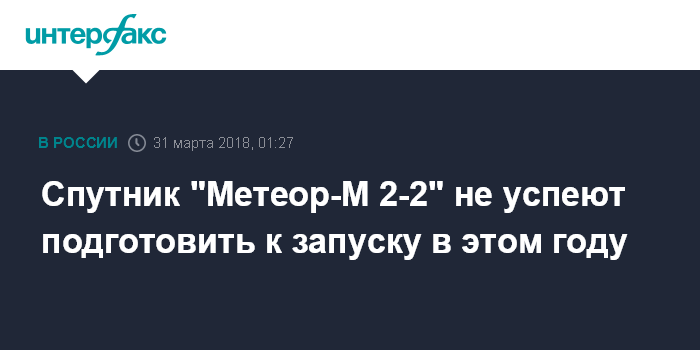 "Производство спутника "Метеор-М 2-2" не приостанавливается. Производитель делает все от него зависящее, чтобы космический аппарат был изготовлен в срок. Окончательное решение о запуске либо его переносе на следующий год будет приниматься в сентябре, поскольку пуски утверждаются раз в три месяца", - сказал источник.