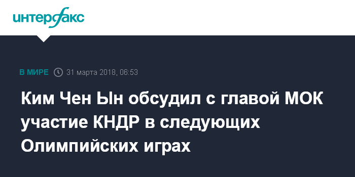 Москва. 31 марта. INTERFAX.RU - Лидер КНДР Ким Чен Ын встретился с Пхеньяне с главой Международного Олимпийского комитета Томасом Бахом и обсудил участие северокорейской сборной в предстоящих Играх в Токио и Пекине, сообщает в субботу агентство Associated Press.