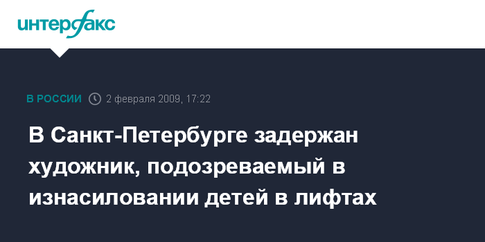 В Санкт-Петербурге задержан художник, подозреваемый в изнасиловании детей в лифтах