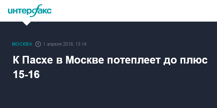 Москва. 1 апреля. INTERFAX.RU - По-настоящему апрельское тепло приходит в московский регион в конце следующей рабочей недели, ожидается яркое солнце и до плюс 15-16 градусов, заявил "Интерфаксу" директор Гидрометцентра России Роман Вильфанд.