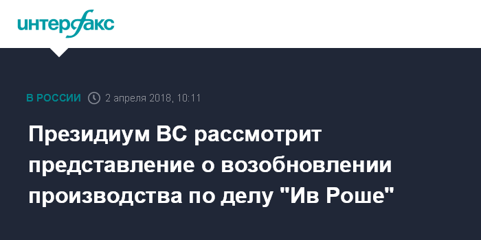 Президиум ВC рассмотрит представление о возобновлении производства по делу "Ив Роше"