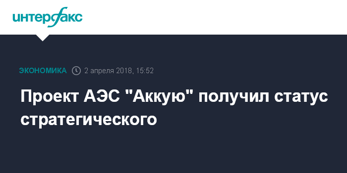 Москва. 2 апреля. INTERFAX.RU - Проект АЭС "Аккую" получил статус "стратегических инвестиций", сообщил в интервью агентству "Анадолу" министр энергетики РФ Александр Новак.