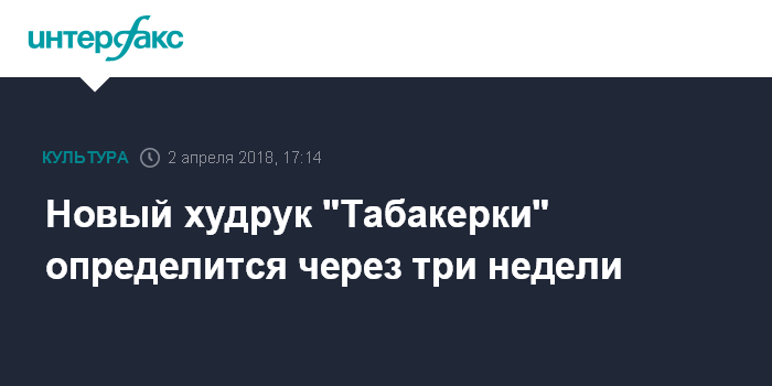 Москва. 2 апреля. INTERFAX.RU - Имя нового художественного руководителя "Табакерки" будет названо после 23 апреля, сообщил министр культуры Владимир Мединский.