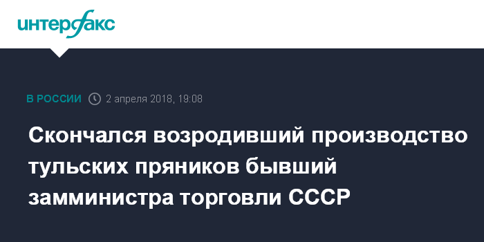 Скончался возродивший производство тульских пряников бывший замминистра торговли СССР