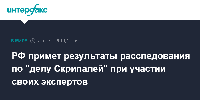 РФ примет результаты расследования по "делу Скрипалей" при участии своих экспертов
