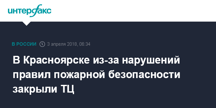 Москва. 3 апреля. INTERFAX.RU - Из-за многочисленных нарушений правил пожарной безопасности и градостроительного законодательства в Красноярске закрыт торговый центр "Вавилон", сообщает во вторник Следственное управление СКР по Красноярскому краю.