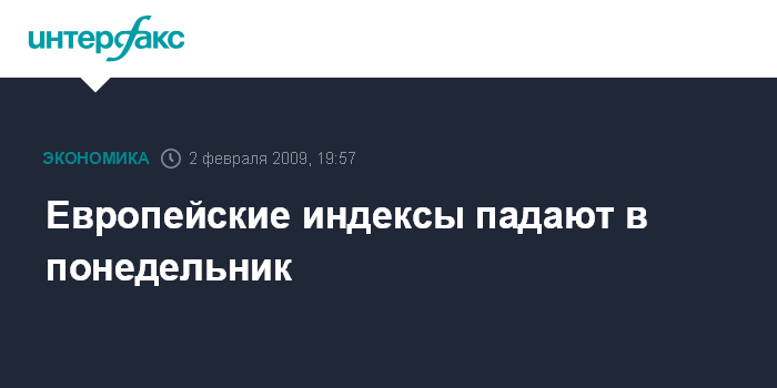 Лондон. 2 февраля. INTERFAX.RU - Европейские фондовые индексы падают в понедельник на фоне растущих опасений, что углубление глобальной рецессии будет способствовать дальнейшему сокращению корпоративных прибылей, сообщает агентство Bloomberg.
