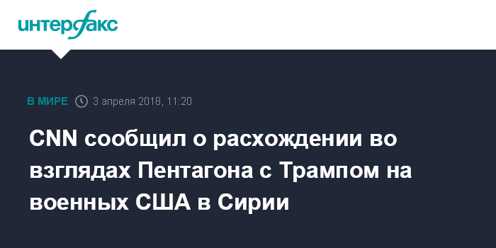 Москва. 3 апреля. INTERFAX.RU - Командование американской армии занималось разработкой планов по отправке дополнительных войск в Сирию, когда президент США Дональд Трамп заявил о намерении вскоре вывести военных из этой страны, передает телеканал CNN со ссылкой на свои источники в Минобороны США.