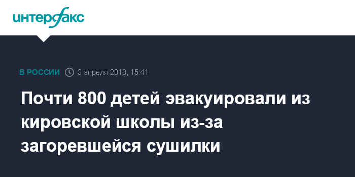 Москва. 3 апреля. INTERFAX.RU - В одной из школ Кирова во вторник произошло возгорание, из здания были эвакуированы дети и персонал.