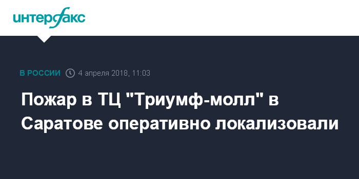 Пожар в ТЦ "Триумф-молл" в Саратове оперативно локализовали