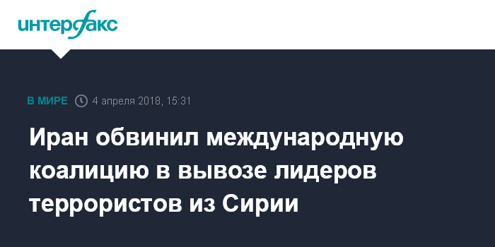 Иран обвинил международную коалицию в вывозе лидеров террористов из Сирии