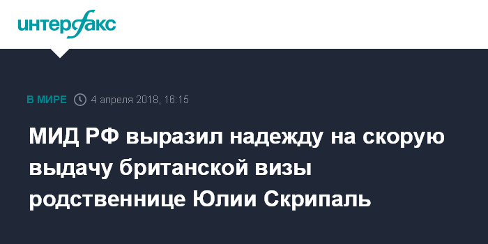 МИД РФ выразил надежду на скорую выдачу британской визы родственнице Юлии Скрипаль