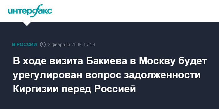 В ходе визита Бакиева в Москву будет урегулирован вопрос задолженности Киргизии перед Россией