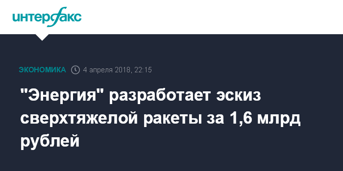 Москва. 4 апреля. INTERFAX.RU - Ракетно-космическая корпорация "Энергия" получила контракт на изготовление эскиза сверхтяжелой ракеты. На портале госзакупок размещен соответствующий контракт, датированный 2 апреля. Контракт заключен между "Роскосмосом" и РКК "Энергия". Он предполагает разработку эскизного проекта космического ракетного комплекса сверхтяжёлого класса к 31 октября 2019 года.
