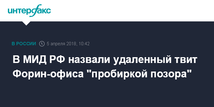 В МИД РФ назвали удаленный твит Форин-офиса "пробиркой позора"