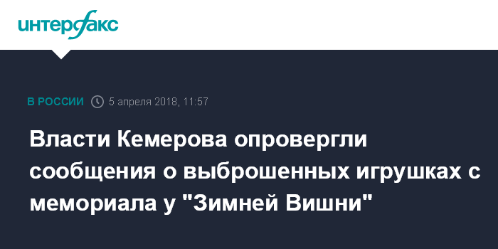 "В интернете появились снимки мусорных контейнеров с игрушками и фотографиями с надписью "Кемерово, помним", якобы расположенные в Кемерове. Эти снимки не соответствуют действительности. С первых дней появления стихийного мемориала жертвам пожара у ТЦ "Зимняя вишня" администрация города взяла под контроль его охрану и содержание", - говорится в сообщении.