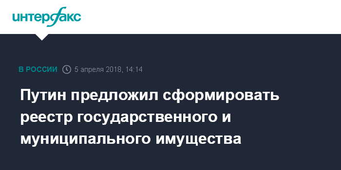 Путин предложил сформировать реестр государственного и муниципального имущества