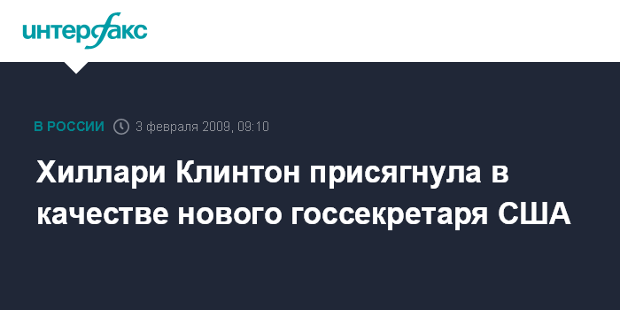 Москва. 3 февраля. INTERFAX.RU - Новая руководительница американской дипломатии Хилари Клинтон поклялась соблюдать конституцию США и защищать страну от внешних и внутренних врагов. Церемония принятия присяги Клинтон состоялась в здании госдепартамента на Фогги Боттом в Вашингтоне.