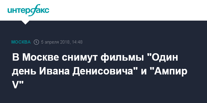 В Москве снимут фильмы "Один день Ивана Денисовича" и "Ампир V"
