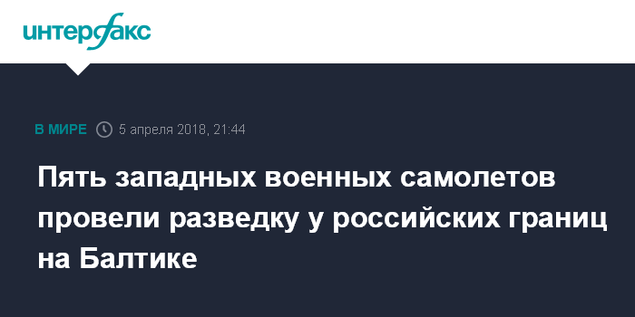 Москва. 5 апреля. INTERFAX.RU - Сразу пять западных военных самолетов, в том числе США, Великобритании, Швеции и командования НАТО, в четверг совершили разведывательные полеты вблизи границ России в регионе Балтики, сообщается на западных авиационных ресурсах.