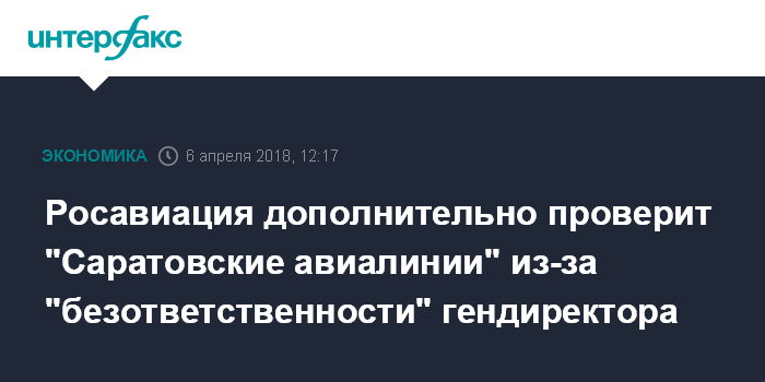 Росавиация дополнительно проверит "Саратовские авиалинии" из-за "безответственности" гендиректора